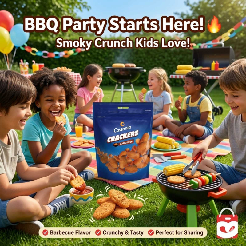 Make snack time more exciting with the smoky, crunchy goodness of Castania Barbecue Crackers — the perfect treat for fun-filled moments and mini BBQ adventures!
