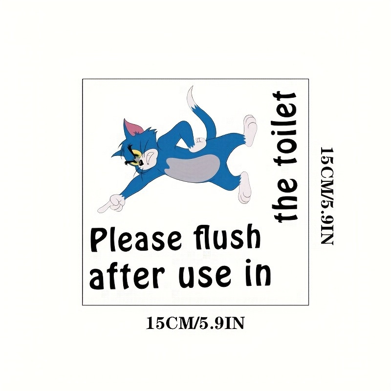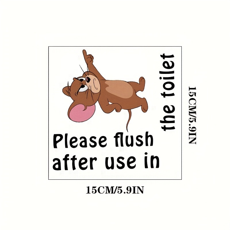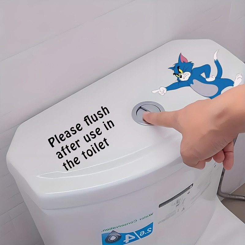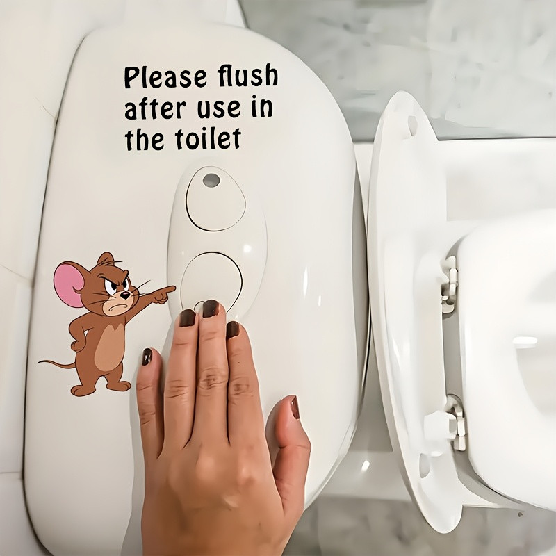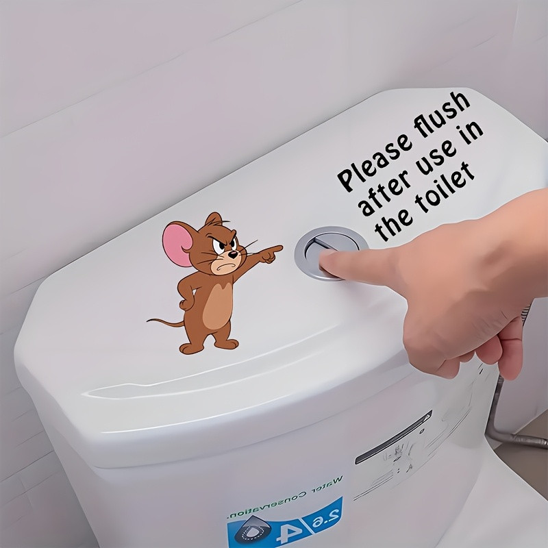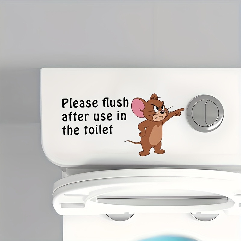 1pc WB Cat and Mouse Fun Reminder Toilet Sticker "Please Flush After Use in the Toilet", Wanda Self-Adhesive Paper Towel Decals, Essential Bathroom Accessory for Home