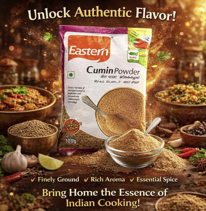 Cumin Powder is known for its digestive benefits and distinctive flavor, making it an essential spice for everyday cooking. With Eastern, you get trusted quality and authentic taste in every pack.