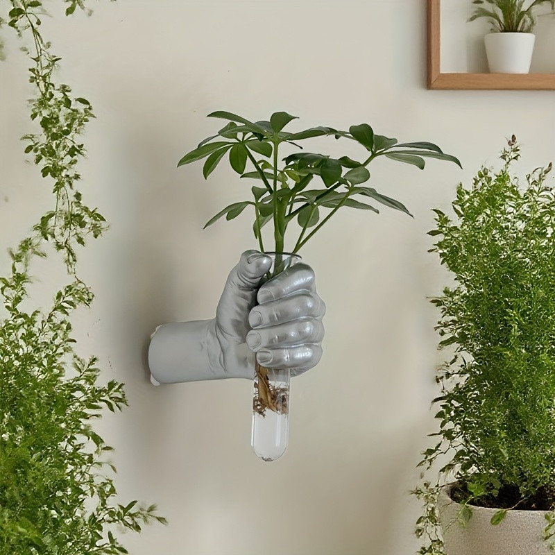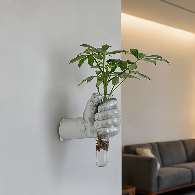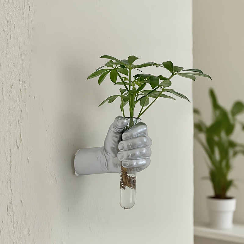 1pc Contemporary Geometric Resin Wall Vase - Hand-Holding Design Wall-Mounted Flower Holder for Fresh Flowers, Modern Home & Hotel Decor, No Electricity Needed, Room Decor Flower Vase, Hotel Decor Accessories, Artistic Floral Decor