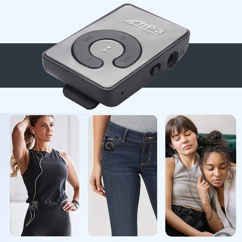 Portable Mini Mp3 Clip Card MP3 Music Player Mirror Card Clip High Quality Digital Music Media Playback Support SD TF Card