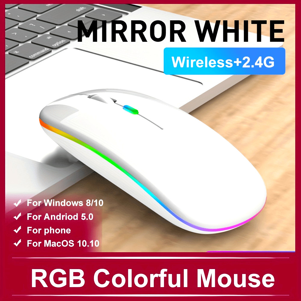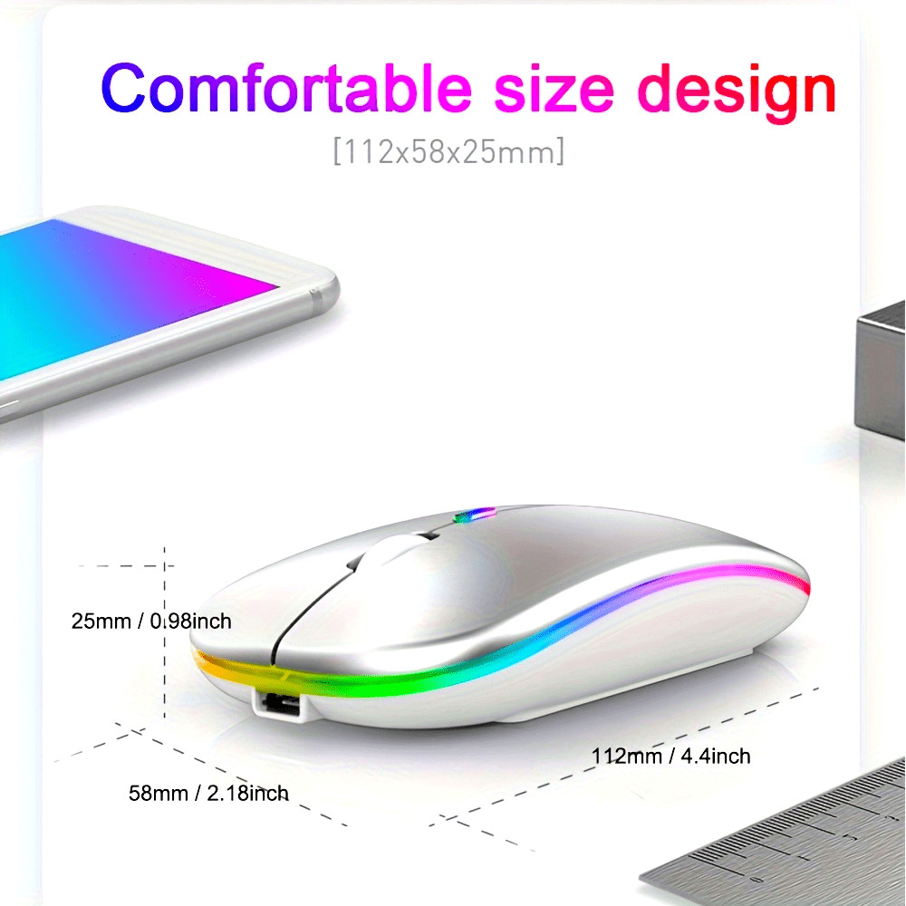 Rechargeable Wireless Mouse Computer Mouse Quiet Pause with Backlight RGB Mouse Suitable for Laptop PC iPad