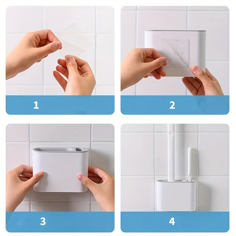 Wall-Mounted Japanese-Style Toilet Brush Set with Soft Silicone Bristles & Hygienic Holder - Space-Saving Bathroom Cleaning System, Durable Plastic Construction, No Electricity Required, Reusable Multi-Component Design for Modern Homes (White) - Ideal for Home & Small Spaces, Compact Organizer, Easy to Clean, Apartment Living